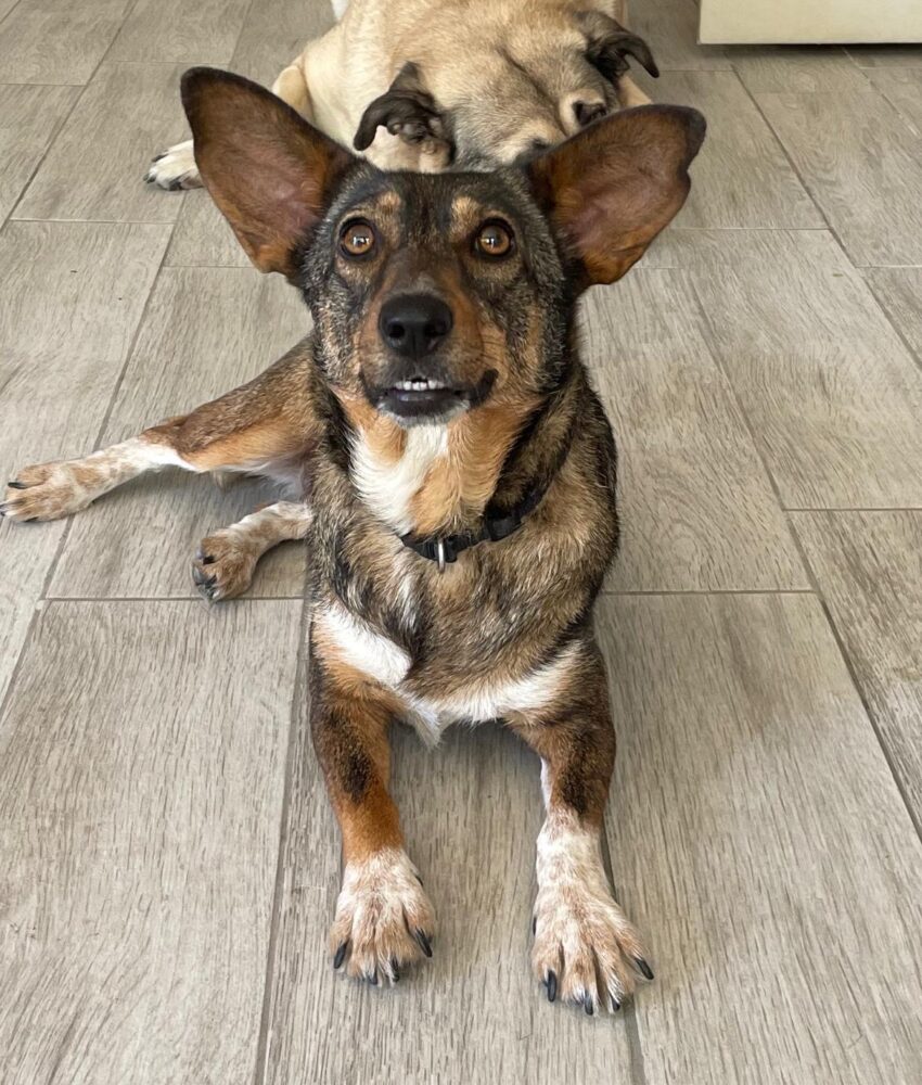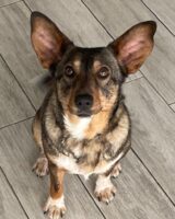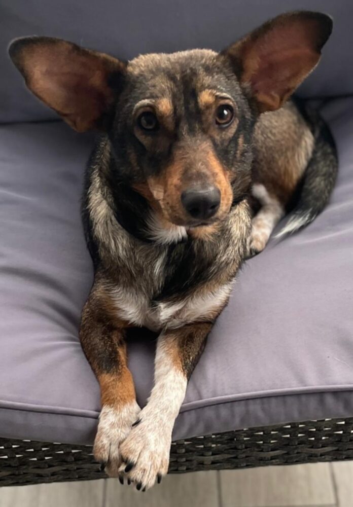 BETANY ist eine 5 Jahre alte Mischlingshündin (geboren am 22.10.2020) mit einer Schulterhöhe von ca. 31 cm; sie wiegt 9 kg.