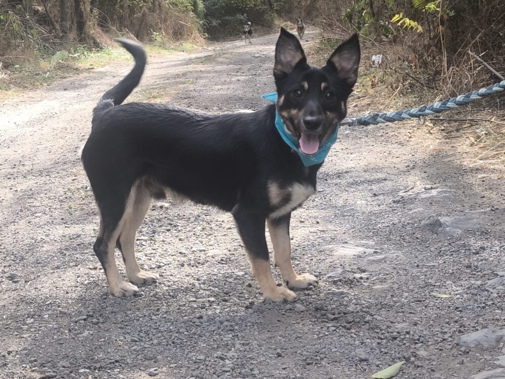 HUGO ist ein 9 Monate alter Pinscher-Mischlingsrüde, geboren am 05.01.2025, mit einer Schulterhöhe von 34 cm.