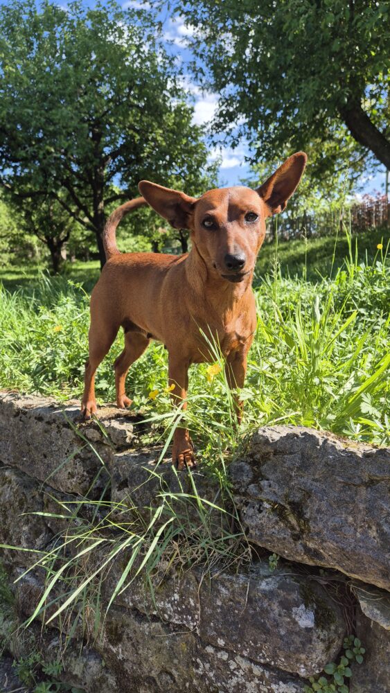 HUGO - 9 Mon. alter Pinscher-Mix, kleiner Entdecker, toll mit Kindern, Katzen, Hunden
