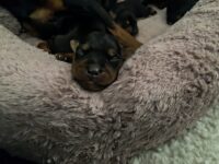 4 Hundewelpen abzugeben! Hallo wir haben am Montag 4 Welpen bekommen. 3 Jungen und ein Mädchen, momentan 430g, 2x 360g…