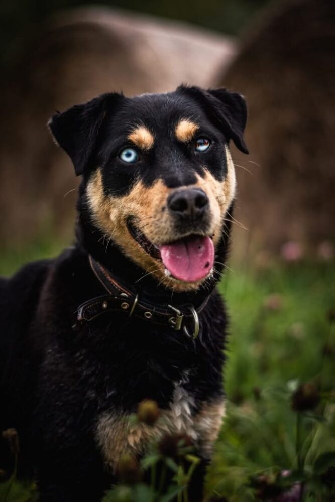 Leila mit ihren hypnotisierenden Augen. Sie ist sehr aktiv und sehr aufgeschlossen gegenüber Menschen. Leila lebt jetzt in einem Tierheim in einem Dorf, das von Feldern und Wäldern umgeben ist. Dort kann man ihr ohne Leine vertrauen und sie kommt, wenn man sie ruft (in einem neuen Zuhause würde das natürlich nur mit Zeit und Arbeit gehen). Sie ist im Tierheim gelandet, als ihre Besitzer ins Ausland gezogen sind und sie zurückgelassen wurde… vielleicht zum Guten, denn sie hat ihr Leben in einem Zwinger verbracht, und das wollen wir nicht für sie. Wir möchten, dass Leila ein Teil der Familie wird, viel Beschäftigung und Abwechslung bekommt und viel Zeit in der Natur verbringt.